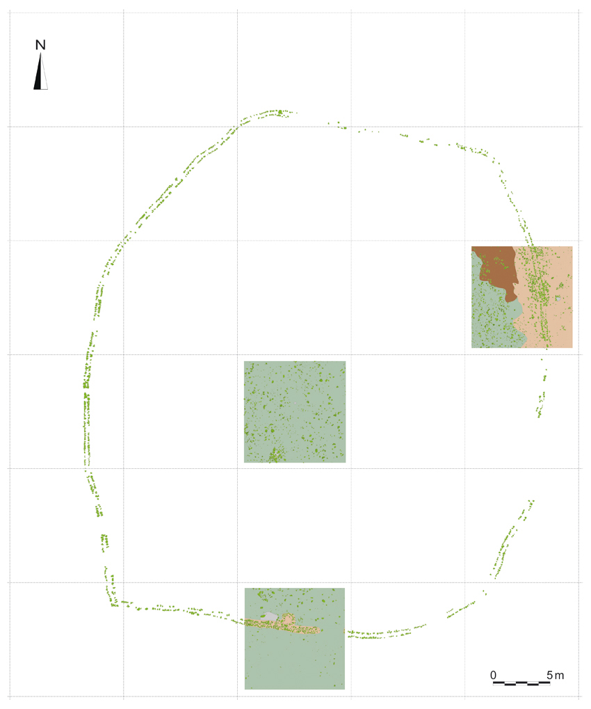 2022 bis 2024 führte Conrad Schmidt (Universität Tübingen) Befliegungen sowie eine geophysikalische Prospektion durch. Letztere umfasste den gesamten Hügel sowie den südlich angrenzenden Teil der Ebene. Sie erbrachte den Nachweis zahlreicher Feuerstellen sowie die Bestätigung der Existenz zweier quadratischer Gebäude und zweier nicht näher bestimmbarer Strukturen, darunter eine sechseckige Umfassungsmauer, die eine ca. 1.600 m² große Freifläche einschließt. Durch die Befliegungen wurden die vier Gebäude beziehungsweise baulichen Strukturen genauer erfasst. Bei den beiden quadratischen Gebäuden handelt es sich um bis zu 30 x 30 m große Steinbauten, die vergleichsweise gut erhalten sind. Eines besitzt einen Brunnen. Im Höhenmodell (DEM) treten die Außenmauern der Gebäude und Teile der Innenbebauung deutlich hervor.